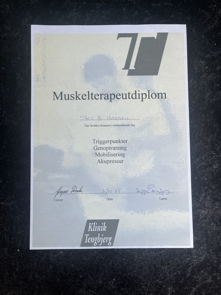 Sten B. Hansen er en erfaren og certificeret behandler med specialer inden for fysiurgisk massage, sportsmassage, genoptræning, træningsterapi og Kinesio Taping. Med diplomuddannelser fra Klinik Tengbjerg og andre anerkendte undervisere tilbyder Sten en professionel og tryg behandling – direkte i dit sommerhus.